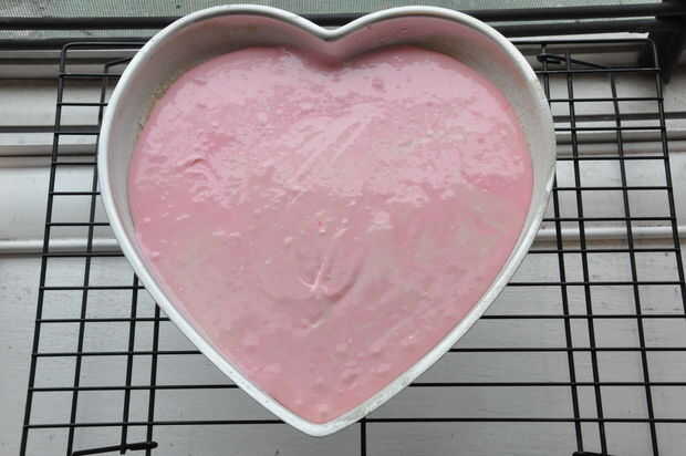 Vierta la masa blanca en la primera cacerola engrasada y preparada. Hornee a 350° F por 12 minutos o hasta que el probador de la torta, éste salga limpio. Enfriar en la bandeja durante varios minutos y luego resultan con cuidado sobre una rejilla para terminar de enfriamiento completamente. Repita con cuencos restantes de la masa asegurándose de lavar, engrasar y enharinar las cacerolas entre hornear.