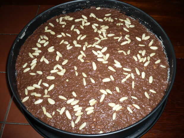 Verter la mezcla, decorar con un poco de piñones y hornear a 180 ° durante 45 minutos. comprobar con un palillo que el bizcocho no es demasiado húmedo. Déjelo enfriar y regalar esta delicia a su paladar.
