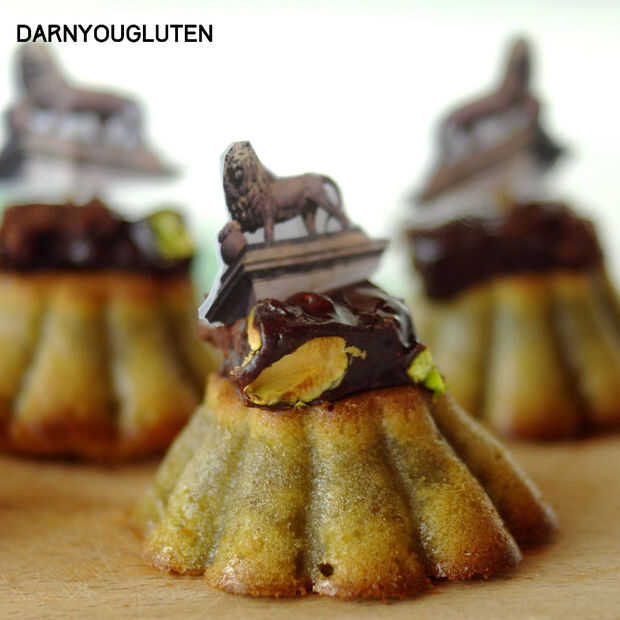 7. Si quieres que se vean como poco "Buttes du Lion", puede afeitar la tapa... que se convierten en la parte inferior, para que se sientan completamente. Luego cortar unos rectángulos de fudge (ver post siguiente receta) para representar el zócalo en que el León está parado. Colocar el dulce de chocolate en la parte superior del montículo, se adhieren por su propia voluntad. Para acabar con las tortas, simplemente imprimir algunas imágenes pequeñas de León - en opuestas direcciones - recorto y palillo dos espalda con espalda en un palillo de dientes que luego se puede empujar en el chocolate y la torta.