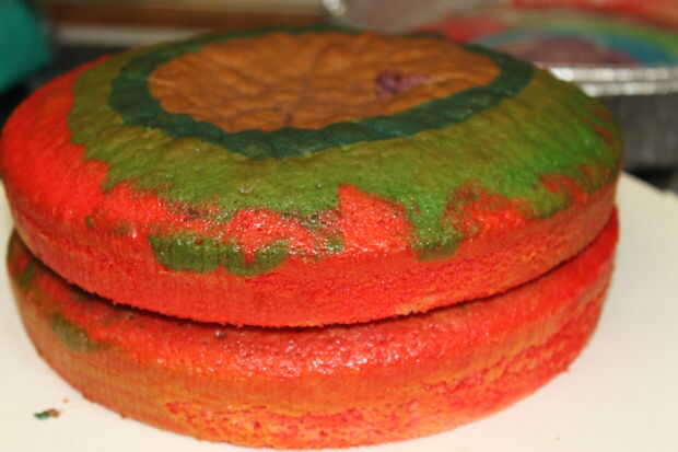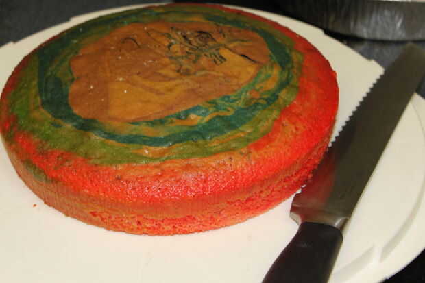 Una vez frío (enfriamiento es la clave), utilice un cuchillo de sierra para la parte superior de viaje por lo que es una superficie uniforme para la siguiente capa.