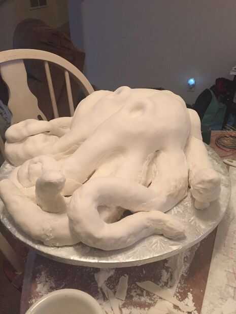 Después de eso me lió algunos restos (fondant) para cubrir cualquier parte que echaba de menos con la primera cubierta. Utilizando pequeños pedazos llena todos los huecos y alisa con un poco de agua para que las costuras desaparezcan.