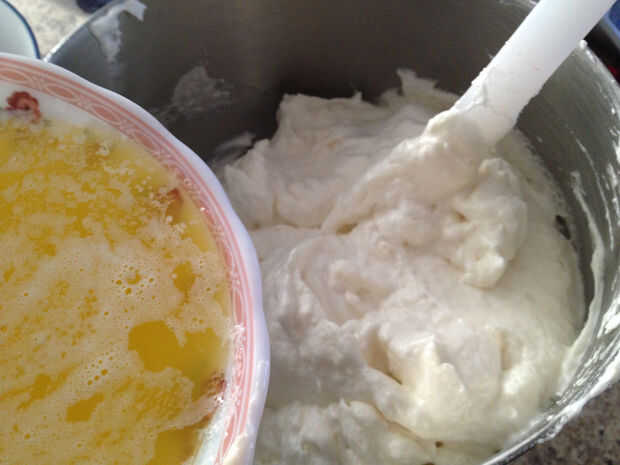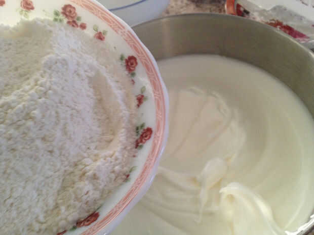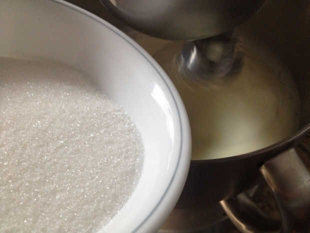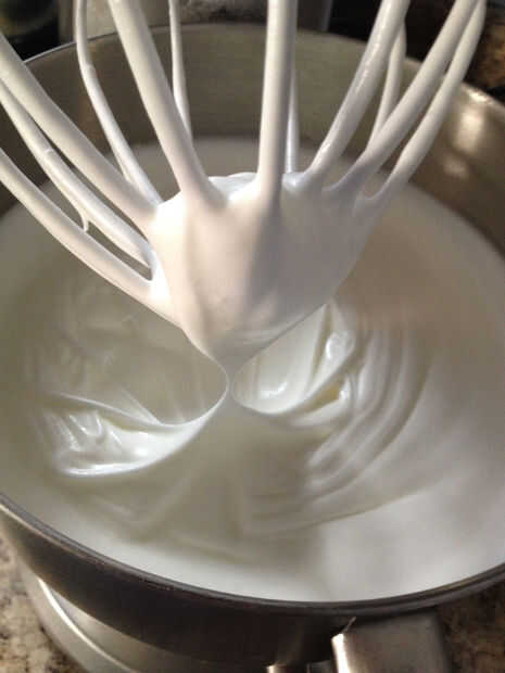 Agregar azúcar poco a poco y seguir batiendo hasta que formen picos firmes