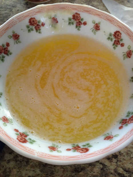 Dividir la masa en dos parte, una con alimento amarillo y aceite de limón con semillas de amapola