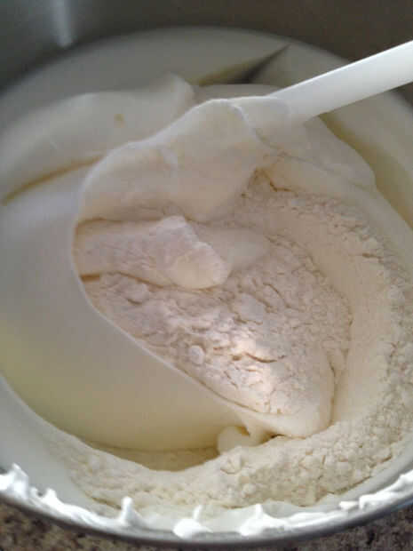 Añadir una mezcla de flor y la maicena, doblar ligeramente