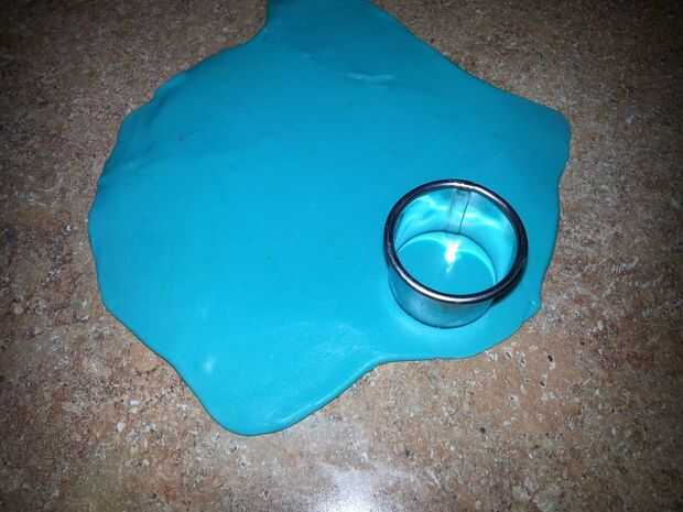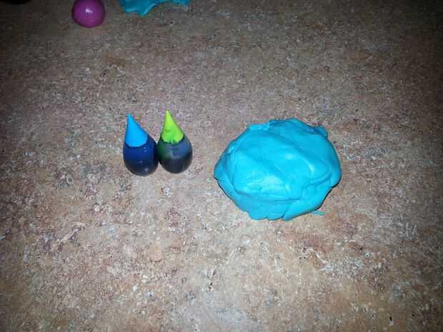 Trabajar en el colorante (uso algunos guantes si no quieres las manos para teñir) en cada taco de fondant.