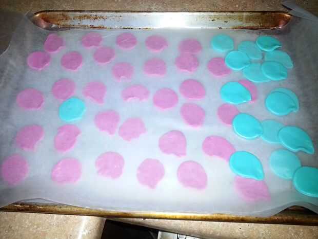 Usando un cortador de galletas de círculo de 1-1/4", corte círculos y coloque en la hoja de papel de cera.