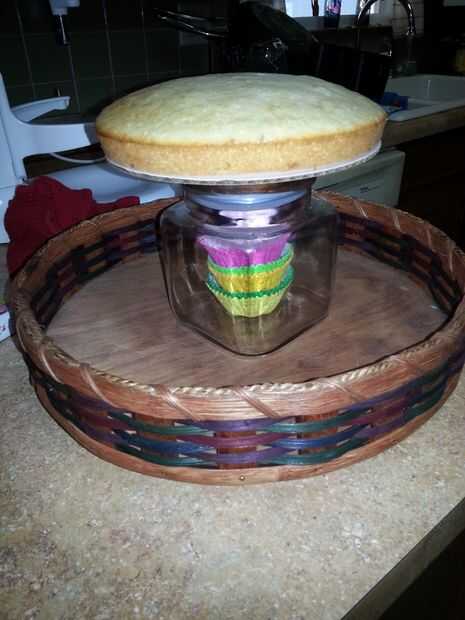 Yo aparejado a mi lazy susan para esparcir estas. Coloque un pastel de 9" en un círculo de cartón pastel. Utilizar el glaseado para cubrir la parte superior de la torta de 9" y Coloque suavemente la otros 9" torta en la parte superior. Suave glaseado sobre la parte superior de las tortas doble y a lo largo de los lados. Dejar en la nevera.