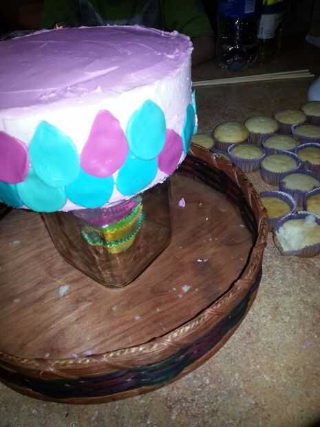 Hacer una púrpura raya todo alrededor de la base de la torta de 9" y cubrir la parte superior de hielo púrpura así.