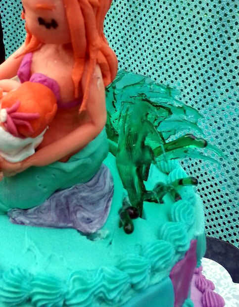Añadir tu figura de sirena en la parte superior de la torta de 6". Romper pedazos de cristal de azúcar y ser posteriores ella.