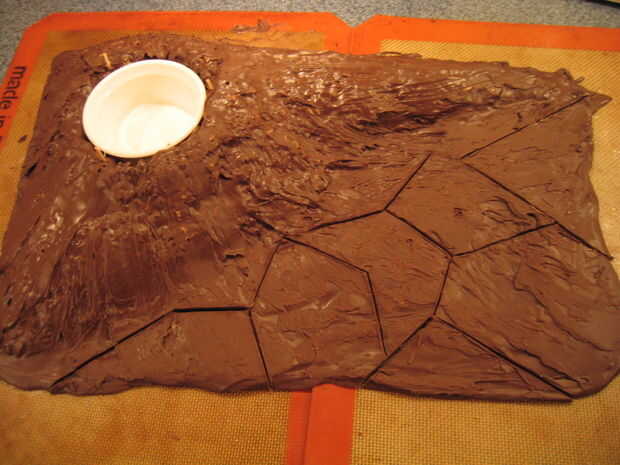 Asegúrese de que se separan el chocolate para hacer un área plana de la tierra. Verás lo que quiero decir en un minuto.