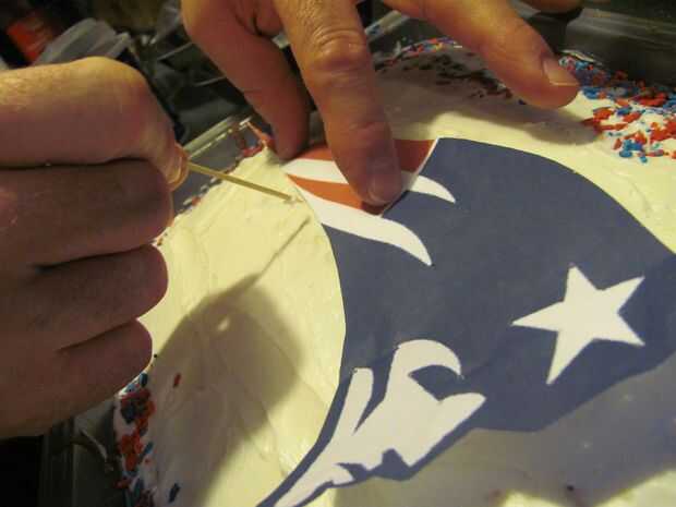 Después de marcar el perímetro y el interior detalles con palillo atiza en el glaseado Retire el papel de la torta y téngalo a mano para referencia.
