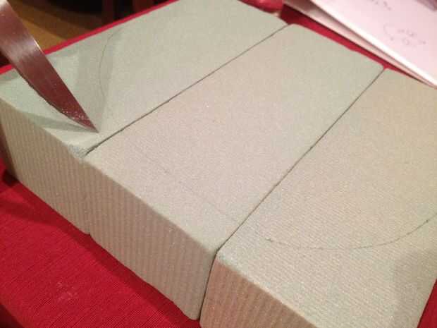 Una vez todo en una sola pieza, puede utilizar su cuchillo para Sierra, esculpir y dar forma como gustaría. (los bordes finos y suaves curvas) Esto también ayudará a las 3 piezas se convierten en uno.