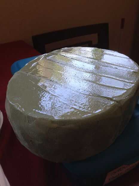 Ahora es el momento para conseguir su color principal, amasarla un rato por lo que resulta un poco suave. Usar un rodillo de fondant o un rodillo limpio para presión y estirar el fondant para que sea delgada, pero no demasiado fina. Que no desea rasgar. Lo más importante, no puede arreglar este paso, por lo que asegúrate de que tienes suficiente, y se extienda todo el suficiente para cubrir tu pastel. Está bien tener demasiado, pero es una tragedia tener demasiado poco. :)