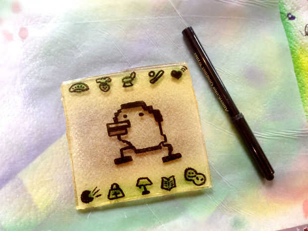 Después de que los iconos están listos, figura su espacio y hacer tu tamagotchi!! Elegí una vista lateral de Tarakotchi. Le bosquejar hacia fuera en el cristal extraño/goma/pegajoso caramelo y tratar de hacerle ver pixelada.