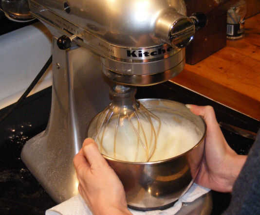 Batir la clara del huevo hasta que formen picos de sostener y doblan en masa. (Este paso no es totalmente necesario ya que cuando he añadido el colorante aplanado bondad tan esponjoso. Supongo que podría separar la masa, luego color y agregar una cantidad igual de claras de huevo, pero fui otra forma como se deben ver)