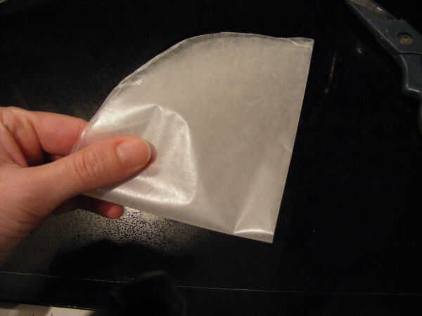 Usando su bandeja como guía, coloque un pedazo de papel de cera hacia abajo, trazar el molde y recórtalo.