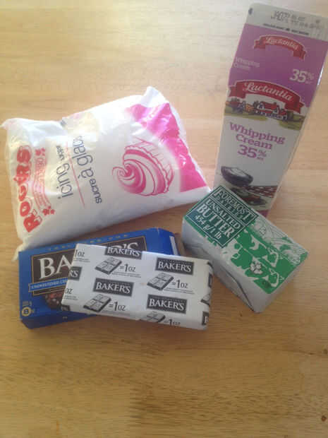 En una olla, a fuego medio, derretir la mantequilla y el chocolate y, a continuación, agregue el glaseado de azúcar y crema. Sacar del fuego, enfriar a temperatura ambiente