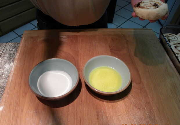 Engrasar una asadera para poner los rollos en de 9 x 13 pulgadas. Poner la mantequilla derretida en un tazón y el azúcar blanco en otro recipiente. Sumerja sus rollitos en la mantequilla primero y luego el azúcar y ponerlas en la bandeja engrasada. Los CRAM en allí agradable y cómodo. Ahora cubrir el rollo con el paño húmedo y dejarlas subir de nuevo durante 30 minutos.