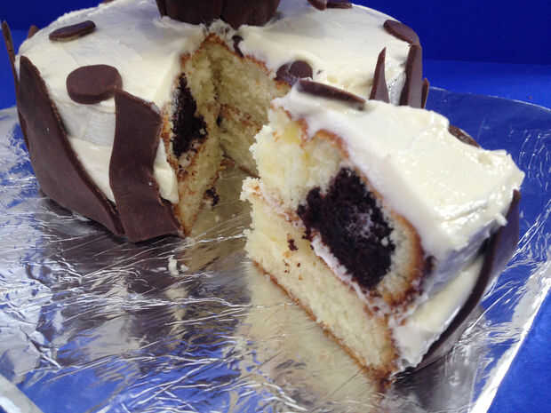 Utilizar torta de chocolate y vainilla para éste pero usted puede hacer los lunares colores, que por supuesto significa arco iris para hornear preparar pasteles y bolas de pastel arco iris
