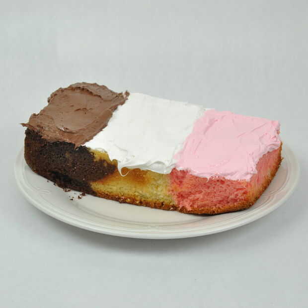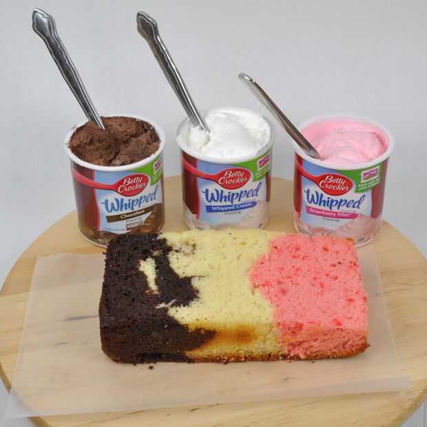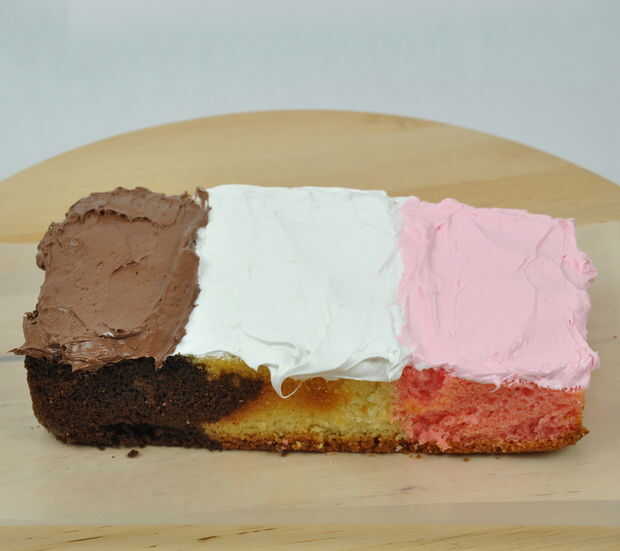 Opté por cortar la parte superior y los lados por lo que se podía ver el color cambio a mejor, pero no tienes que hacer esto a menos que quieras intentar demostrar sus habilidades de seccionamiento! Una vez que estés listo, helada de tu pastel. Pasé de helar más claro a más oscuro. Cuidadosamente helada a la sección correspondiente de la torta con él corresponden a helar. Luego mostrar y comérselo!