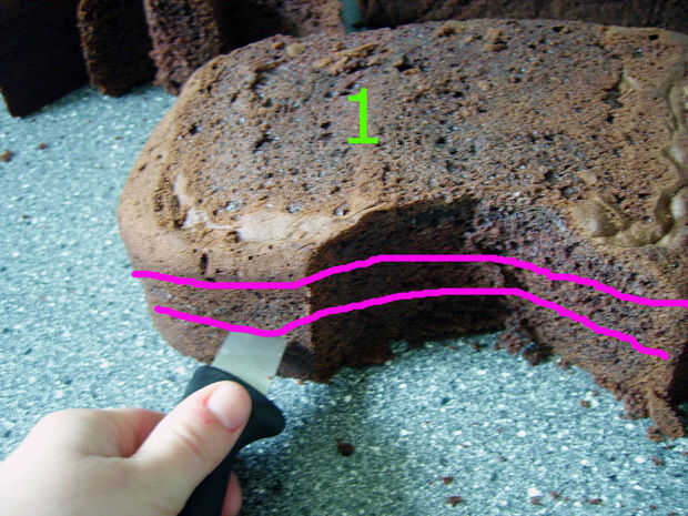Cortar 3 capas de sus piezas de pastel.