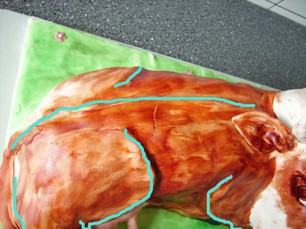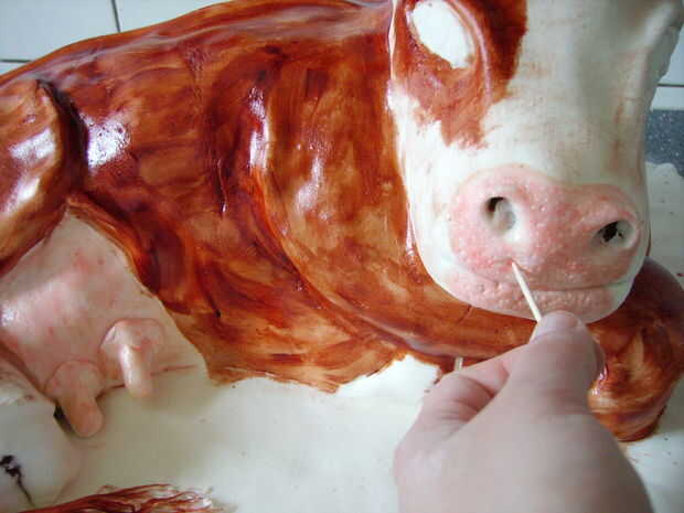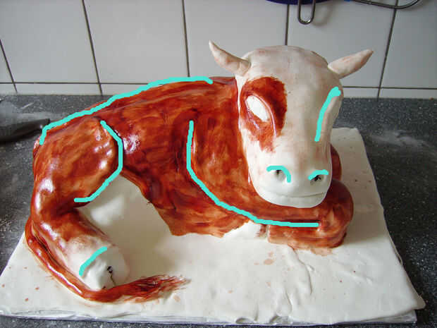 Añadir textura a la pasta de azúcar pellizcando con los dedos - las líneas turquose mostrarle dónde.