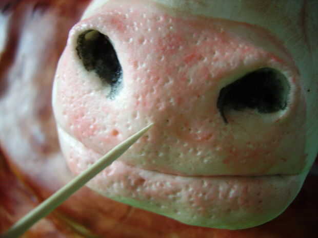 Asoman algunos pequeños agujeros con un palillo de dientes en el área de la nariz