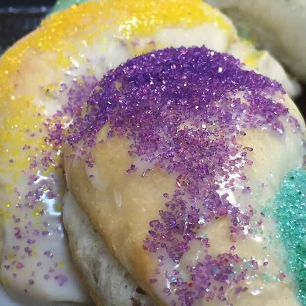 Cuando la gente dice torta del rey, más que de Mardi Gras, pero mi familia tradicionalmente utiliza este pastel con motivo de la solemnidad de la Epifanía (6 de enero). Llamar a una torta es un poco inapropiada. El rey "torta" es un rollo de canela trenzado decorado con glaseado y azúcares de colores. Hay un bebé de plástico escondido dentro para que el receptor de la pieza con el bebé consigue algunos tipo de reconocimiento u obligación. En mi casa, el niño que lo encuentra es la "Reina" o "rey" para el día.
