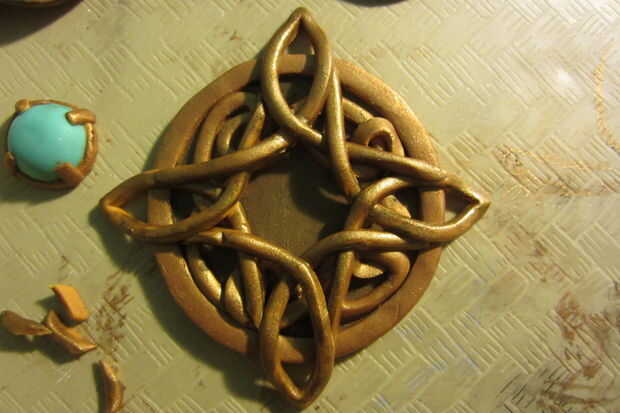 Con su oro más ligero de color polvo, pintar el resto de los detalles. En este punto cualquier fondant sin pintar amarillo debe cubrirse con el oro más ligero. ¡ No olvides tus cadenas y anillos! Una vez que ha secado el oro ligero, puede volver con un poco de su color oscuro agregar sombreado y profundidad.
