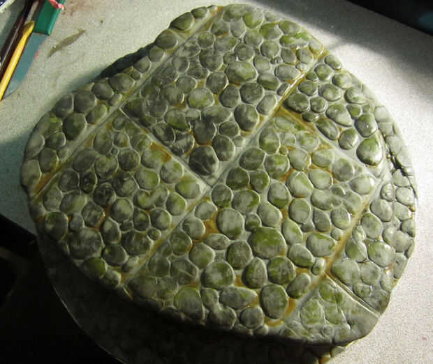 Deb Perelman con mi vida. Hizo un pastel de mantequilla de vainilla en forma de corazón y había cubierto de fondant, le dio una textura adoquines y había pintado un poco. (Pasta de azúcar no es necesario para cubrir la torta entera aunque!) Asegúrese de tener su torta o al menos su pastel sartenes para que sepa lo que la escala para hacer el amuleto. Además, el montaje final del amuleto es hecho sobre la torta, crema de fondant necesita tiempo para establecer antes de hacerlo.