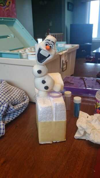 Me gusta mantener las cosas simples, así que hacer mis primeros fuera el mismo fondant con que cubre el pastel. Fondant de malvavisco puede obtener especie de caídos cuando se pone caliente y no quieres a Olaf fusión tan espolvorear en un poco de polvo tylose mientras dan forma y endurezca las cosas.