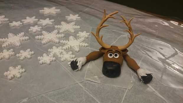 Sven se hace de la misma manera-hacen sus cornamentas antes de tiempo y deje secar. Inició como poco cuerdas de fondant y luego usé pequeñas tijeras para hacer pequeñas tijeras para hacer las ramas. Añade más detalle más adelante por cepillado en algunos alimento marrón oscuro colorante diluido con vainilla.