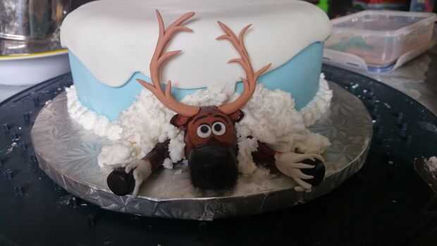 Después viene la diversión parte palo en todas tus decoraciones con su cola. Yo también vivo un borde alrededor de los bordes de dos capas para ocultar la costura / de cualquier espacio. La nieve alrededor de Sven es sólo algunos restos guinda que aglutinadas a su alrededor.