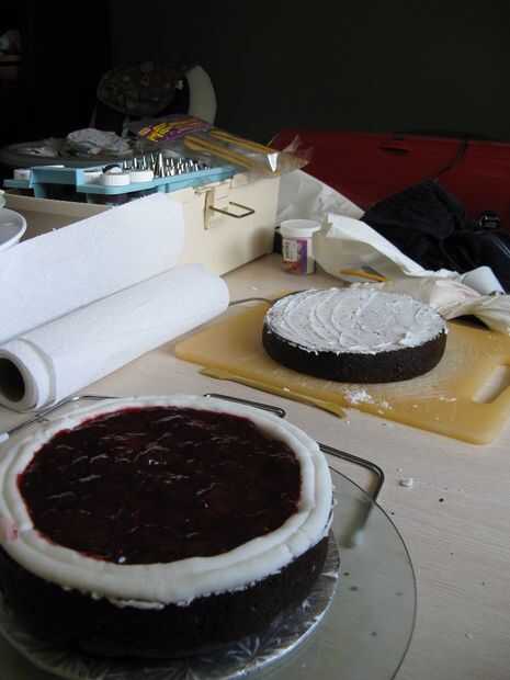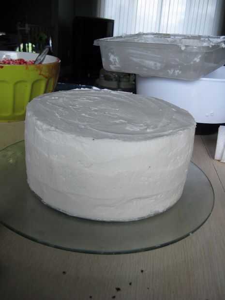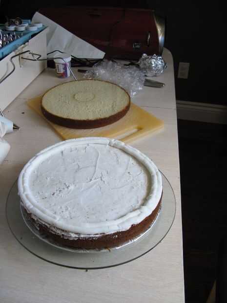 Después de que has llenado tu torta (o no) y cuidadosamente vuelva a colocar la parte superior, necesita hielo la cosa entera. No te preocupes si has golpeado un pedazo apagado o agrietado en algún glaseado arregla todo, así que rellene cualquier error. ¿Por qué necesito hielo cuando estoy cubriendo con fondant, que se puede decir? La guinda proporciona una capa cómoda agradable que permite el fondant tener algo para ponerte y para mantener su mirada suave fondant. Mayoría de las personas sugiere conseguir su capa de hielo tan suave como sea posible (usted puede Google Viva papel toalla método para consejos) pero se puede ver en las fotos que no consigo demasiado loco.
