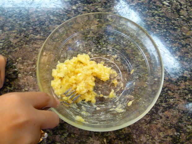 Tomar las dos bananas y puré como un hombre con un tenedor.
