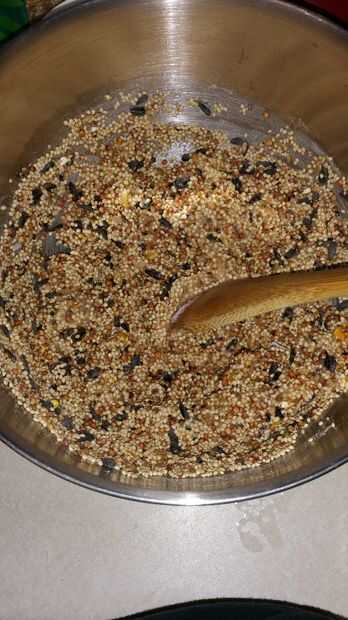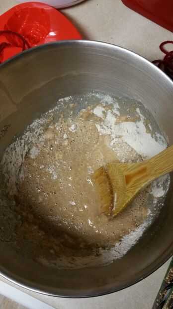 A continuación, agregue el jarabe de maíz. Y luego la harina. Mezclar hasta obtener una mezcla uniforme (algo).
