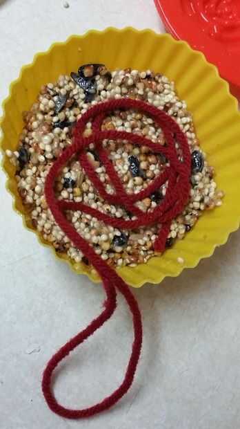 Si está añadiendo cadena, llenar tus moldes mitad - agregue la cadena (Asegúrese de dejar un lazo colgando sobre el lado) y luego llenar el resto del camino.