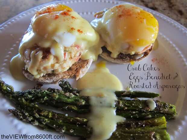 y con un huevo escalfado. A continuación, el paso final es al principio la cosa entera con salsa holandesa (yo uso comprada) y una pizca de paprika para el color.