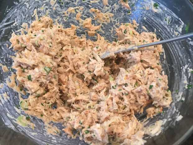 Si la mezcla no está sosteniendo juntos añadir un poco más de mayonesa para hacerla más suave.