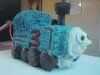 Thomas el tren, apilados y me corte el pastel para hacer la forma. Las ruedas son cupcakes en sus lados. He utilizado vainilla glaseado teñido para decorar.