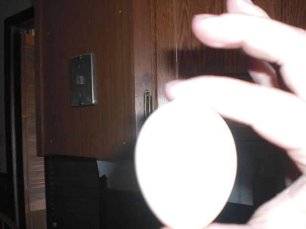 Primero tenemos que preparar los huevos. Configurar los huevos para que el agujero es hacia arriba. Usted puede estabilizar y luego usando una sartén mini cupcake uso su agente de engrase cacerola agregando un poco más de lo que se necesita para recubrir el interior de cada huevo. Tome los huevos uno a la vez, cubrir el orificio con un dedo y agitar el huevo para rebozar. El dedo no debe bloquear la liberación de la presión de dentro del huevo. Un huevo agrietará abierto si permite que la presión de aire que se acumule en su interior. Sacuda cualquier exceso de grasa.