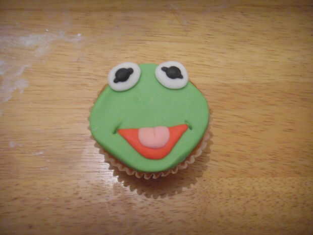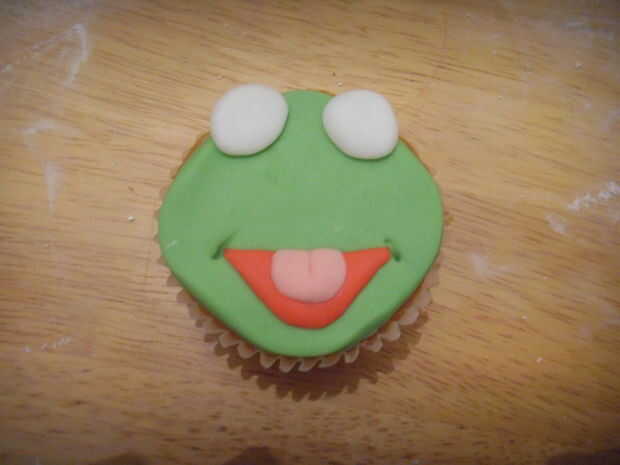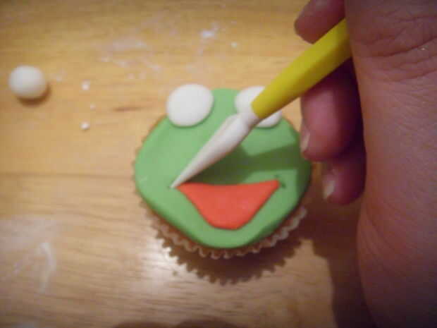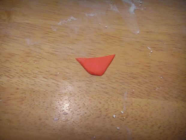 Estirar la pasta de azúcar rojo fino, corte un había ' forma de la boca.