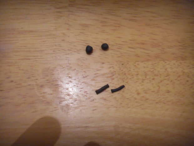 Rodillo de bolas pequeñas de 2 y 2 'salchichas' pequeñas de pasta de azúcar negra.