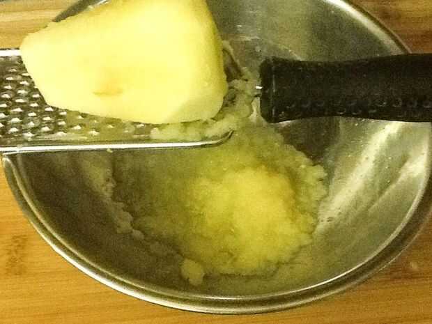 2) ralla dos manzanas en un recipiente