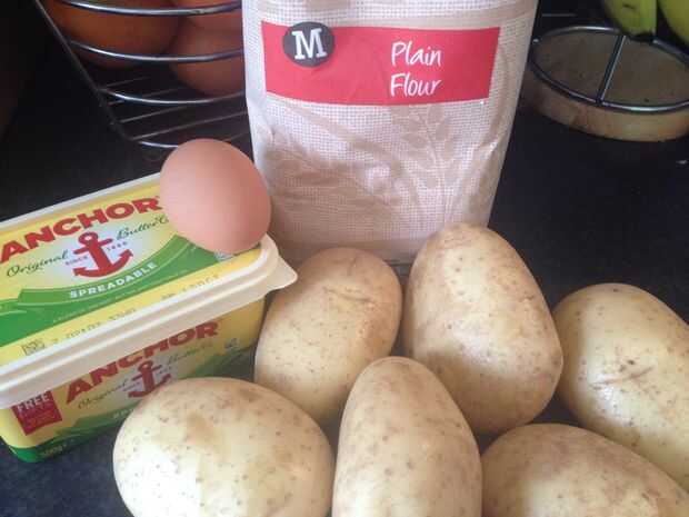 hecho el pastel de patatas es muy sencilla y deliciosa.  Es ideal para el desayuno.Paso 1: ingredientes Ingredientes:-Harina-Huevo-Patata-SalNota: no agrego otras aromáticas. Puedes probar si quieres. Y sólo he añadido un huevo, ya que no me gusta de