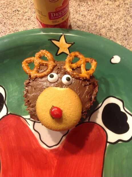 Por último, añadir dos eyeball caramelos a los renos justo encima de la oblea de vainilla. Asegúrese de mantener los globos oculares relativamente juntas.