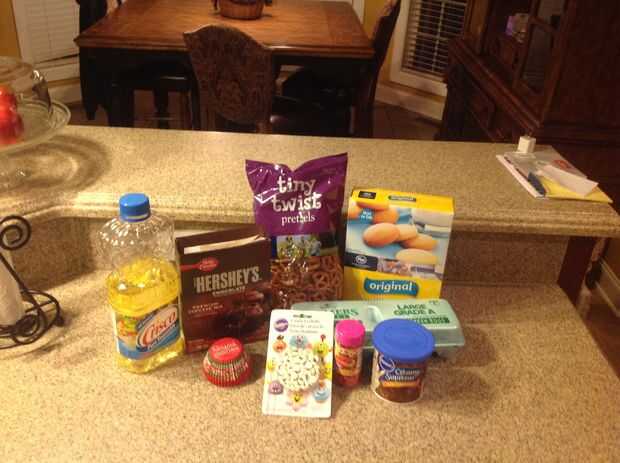 Ingredientes decorativos consisten en chocolate, glaseado, Sorbetos de vainilla, galletas saladas, gemas de canela, para horno y dulces ojos.