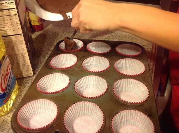 Una vez que se mezcla con la masa, vierta cantidades iguales en un cupcake.