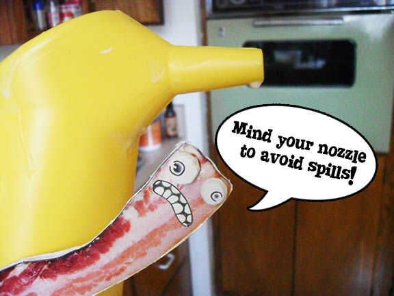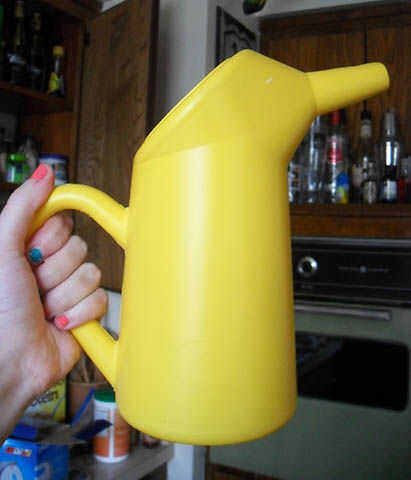 * Ser consciente de cómo se sostenga la jarra durante este proceso. Estaba agarrando mina ligeramente inclinada hacia adelante la primera vez y masa salió directamente de la boquilla.
