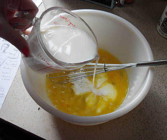 Agregue la leche (2 tazas) una taza a la vez, batiendo entre partes.